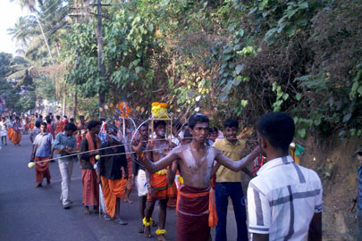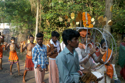 דבר מעניין נוסף הוא ההתייחסות האגבית של אנשים שעוברים ליד התהלוכה באופנועים, ריקשות או מכוניות. התהלוכה נעצרת לרגע כדי לפנות מקום לתנועה בכביש והאנשים עוברים לידה בלי להתרגש. אחרי הכל, אנחנו בהודו, ואין שום דבר מוזר או מפתיע במיוחד בתהלוכה של עשרות אנשים בטראנס דתי, עם שיפודים בלחיים, שעוברת לידך… ובכל זאת, מה אפשר להבין על המנטליות ותמונת העולם של אנשים שבשבילם מראה כזה הוא דבר שגרתי ומובן מאליו?
