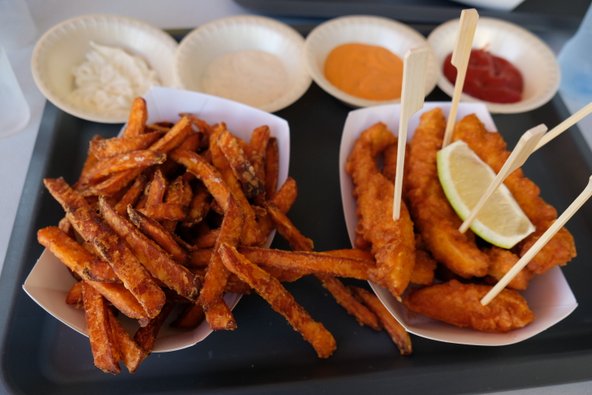 צ'יפס ודג קוד פריך עם מגוון רטבים ב-holland Fish & Chips