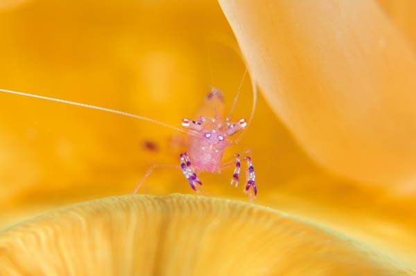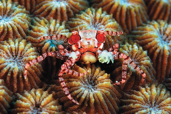 סוסון ים גמדי: מחט בערימת שחת אחרי האקשן בצלילת הכרישים יצאנו לחפש את סוסון הים הקטן בעולם (Denise's Pygmy Seahorse). סוסון הים הזה התגלה לראשונה בניו קלדוניה בשנות השבעים, כשחוקר אלמוגי מניפה החליט להעלות למעבדתו מיני מניפות שונים, ולתדהמתו גילה יצורים קטנטנים באורך של כסנטימטר, החיים בין ענפי המניפה ומחקים את צורת הפוליפים ואת צבעם. היום ידועים למדע שלושה מיני סוסוני ים גמדיים. הסוסונים חיים בזוגות על אלמוגי המניפה, והשיא שדווח הוא של 28 סוסונים על מניפה אחת. כשהגעתי למניפה הבנתי עד כמה קשה להבחין בסוסון. מחט בערימת שחת. המדריכים המקומיים החלו לסרוק את המניפות מילימטר אחר מילימטר, ואחרי כמה דקות מורטות עצבים נמצא היהלום הנכסף. חשבנו שלמצוא את הסוסון על המניפה זה החלק הקשה ביותר. ציפתה לנו הפתעה מתסכלת: בכל פעם שהרמנו את המצלמה לכיוון הסוסון הוא פשוט נעלם. הפתרון היחיד היה סימון הסוסון מצדה השני של המניפה על ידי המדריך המקומי. אגרוף הברזל של גמלן שלמה בעלי חיים תת־ימיים רבים מתקשטים בצבעים. הבולט מכולם הוא גמלן שלמה (Mantis Shrimp), שצבעיו אדום, ירוק וכחול עזים. הוסיפו לזה עיני זבוב, ציידו אותו גם ב"אגרופי ברזל", ותקבלו את אחד הסרטנים הגדולים, היפים והמסוכנים שמשוטטים על הקרקע החולית של פפואה ניו־גיני. מבנה עיניו מורכב ביותר: כל עין מורכבת מאלפי קולטני אור המעניקים לו ראייה מרחבית של 360 מעלות. הנשק הסודי של הגמלן הוא זוג זרועות המשמשות אותו כפטישים, ובעזרתן הוא מסוגל לחבוט בטרפו במהירות ובעוצמה דומה לזו של קליע בקוטר 0.22 מילימטרים. עכשיו, עם מידע מפחיד כזה, מצאנו את עצמנו מול השאלה: האם להתקרב עוד כמה סנטימטרים ולהסתכן בהסתערות של הסרטן שעלולה להסתיים בניפוץ המצלמה, או שנסתפק בתמונה מרחוק. הפיתוי היה עז. התקרבתי למרחק של כמה סנטימטרים, עד שעיניו מילאו את כל הפריים. אי אפשר היה לעמוד בפניו.