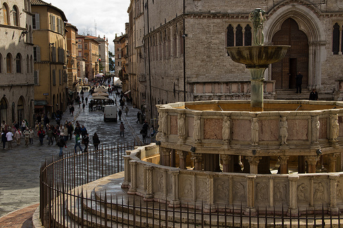 בפיאצה 4 בנובמבר נמצא את המזרקה הגדולה (Fontana Maggiore) שנבנתה במאה ה-13. התבליטים השונים שמעטרים אותה מפיחים בה רוח חיים וגורמים לתיירים ולמקומיים כאחד לעצור ולחקור אותה שוב ושוב מכל כיוון אפשרי. אותה מזרקה הפכה ברבות השנים לנקודת ציון חשובה ולמקום מפגש מרכזי, ולמרגלותיה קורים הרבה דברים מעניינים. בערבי הקיץ הנעימים מתמלאת הפיאצה בצעירים, ואל ההמולה מצטרפות גם להקות של סנוניות שמוסיפות לשמחה. בתחילת דרכי בעיר, נהגתי לבלות ימים רבים בין כתליה של מצודת הרוקה פאולינה (Rocca Paolina), בניסיון לשחזר את מאבקי הכח הבלתי פוסקים בין משפחת האצולה למוסד הכנסייה במהלך המאה ה-16 ואת השתלטות האפיפיור על העיר. סמטאותיה הצרות של המצודה מחבקות את המבקרים בה ונותנות תחושה של עיר תת-קרקעית. המדרגות הנעות שנבנו בה במהלך שנות ה-80 מקשרות את המרכז העתיק עם חלקה האחר של העיר. מצודת הרוקה פאולינה הפכה, ללא כל ספק, לאחד מסימני ההיכר של פרוג'ה.