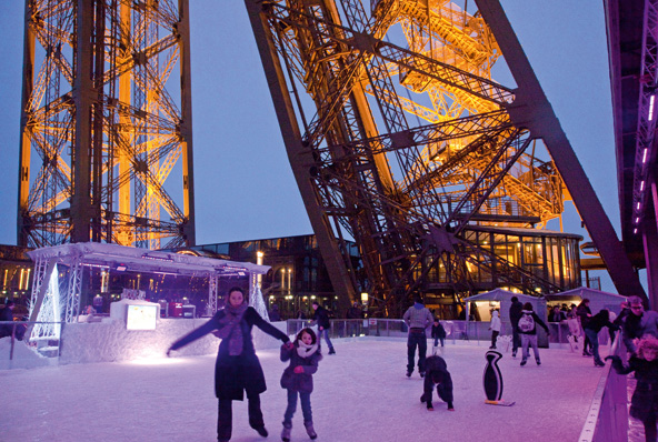 פריז היא עיר מושלמת לחופשה משפחתית. ילדים בכל גיל ייהנו לא פחות מההורים שלהם מכמה מהחוויות הבולטות של פריז – עלייה למגדל אייפל, טיפוס לראש מגדל הפעמונים בקתדרלת נוטרדאם, שייט על הסן, בילוי של אחר הצהרים באחד הגנים היפים של העיר, כמו גני טיולרי או גני לוקסמבורג. את החופשה בפריז אפשר לשלב עם טיולים בסביבה וביקור באחד או יותר מפארקי השעשועים הנפלאים, כמו דיסנילנד פריז או פארק אסטריקס. לגדולים ולקטנים מבין המונומנטים המפורסמים של פריז, מגדל אייפל הוא המפורסם והבולט ביותר, וכמעט אין תייר שמוותר על העלייה לראש המגדל, חוויה שמלהיבה קטנים וגדולים כאחד. במגדל יש שלוש קומות תצפית: הקומה הראשונה, שהתחדשה לאחרונה ברצפה שקופה, נמצאת בגובה 57 מטר. מדי חורף, בין דצמבר לפברואר, פועלת בה זירת החלקה על הקרח שמאפשרת להליק בהנאה בזמן שמשקיפים על נופי העיר. הקומה השנייה, בגובה 115 מטר, מציעה תצפית נהדרת על העיר, והקומה השלישית, בגובה 276 מטר, ממנה ניתן ביום בהיר לצפות למרחק של עד 70 קילומטר.  זירת ההחלקה במגדל אייפל | צילום: Paris Tourist Office / Amélie Dupont © תצפית נהדרת נוספת על העיר מצפה לכם מראש מגדל הפעמונים של כנסיית נוטרדאם. ילדים חובבי טיפוס ייהנו לטפס ב-387 המדרגות הספירליות שמובילות לראש המגדל.