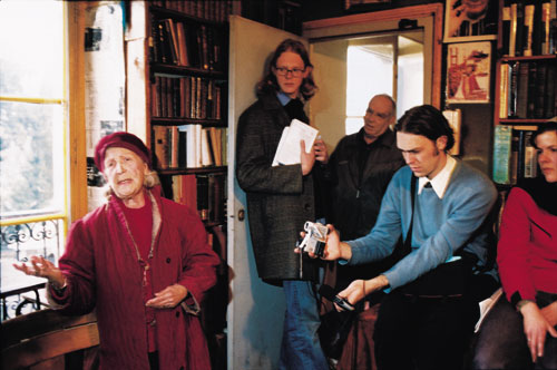 כמה ממשתתפי מסיבת התה – צעירים ומבוגרים, תיירים וצרפתים, סטודנטים וגם זמרת עבר צרפתייה (משמאל), שפצחה בשירה מרגשת. בעלה, איש מבוגר שבא למסיבת התה בכל יום ראשון, חזר ושאל כל אחד מהנוכחים "האם הראיתי לך את אוסף התמונות שלי?". מי שלא הכיר אותו וענה "לא" נידון לשיחה בת חצי שעה, תוך דפדוף באחד מאוספי הצילומים המוזרים ביותר של אנשים מפורסמים