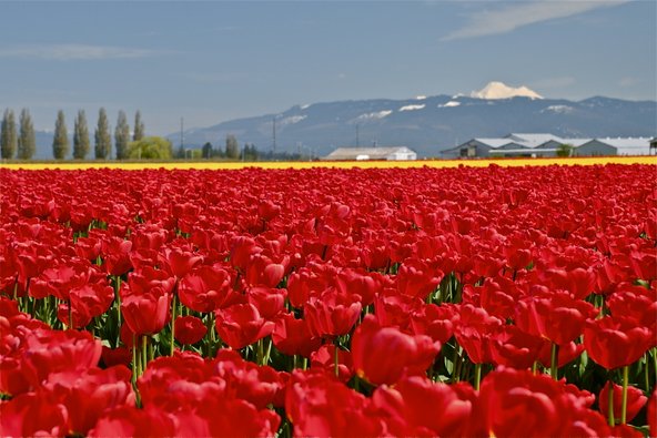 צבעונים בעמק סקאגיט. ההר המושלג ברקע מזכיר שזוהי מדינת וושינגטון ולא הולנד… | צילומים: שאטרסטוק