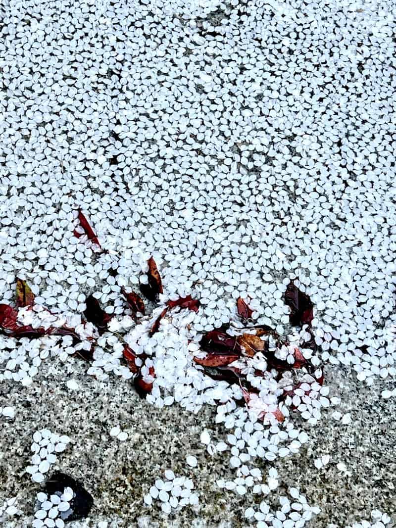 שבועיים בדיוק יחלפו מהנץ הניצנים על ענפי העץ הערומים ועד לנשירת עלי הכותרת של הפרחים הצפופים אל האדמה.