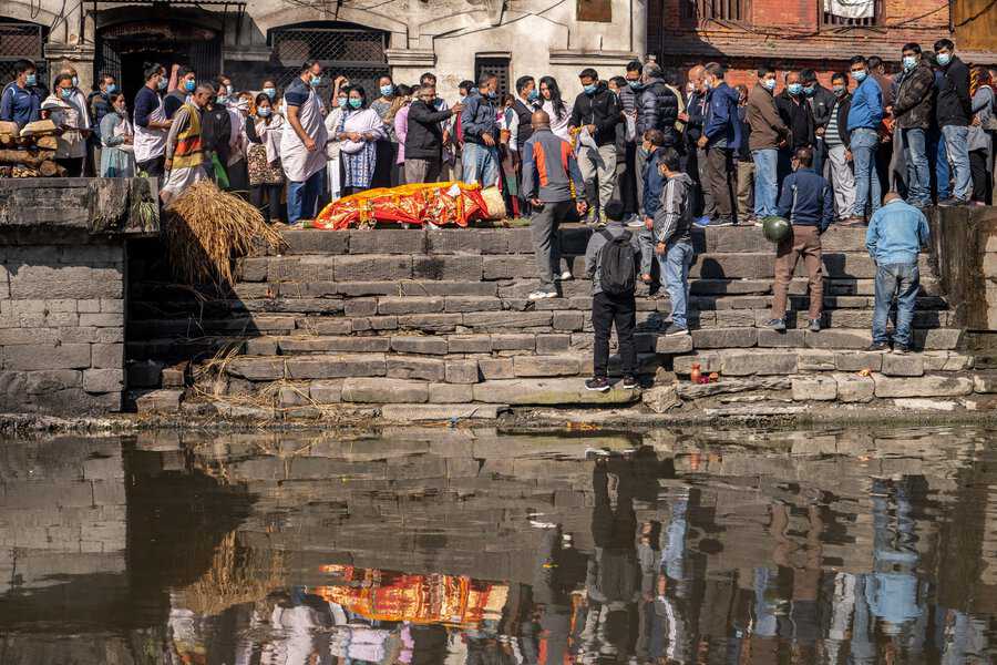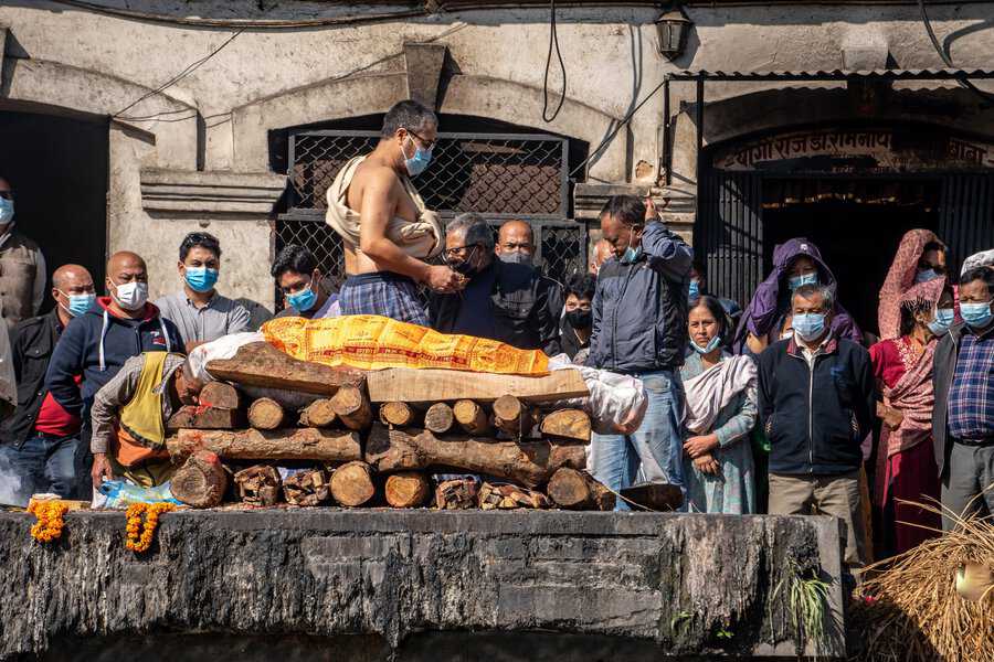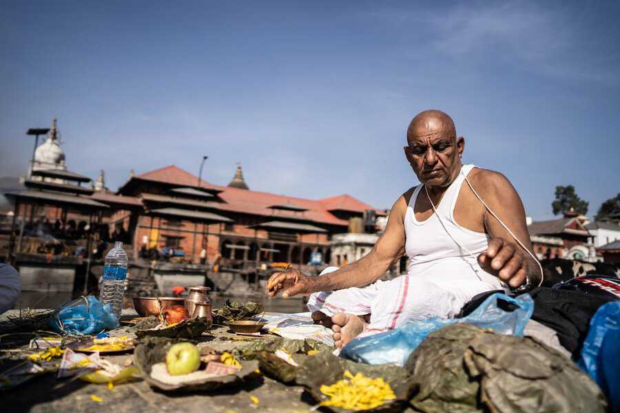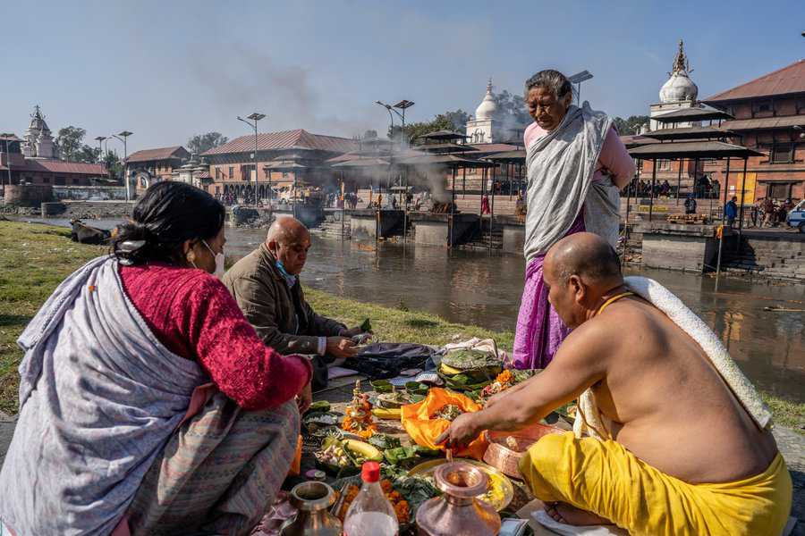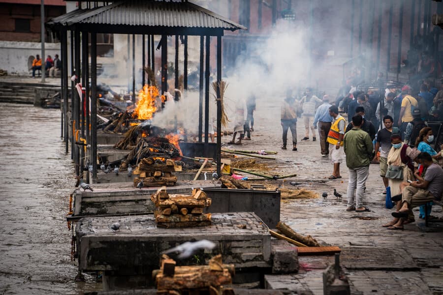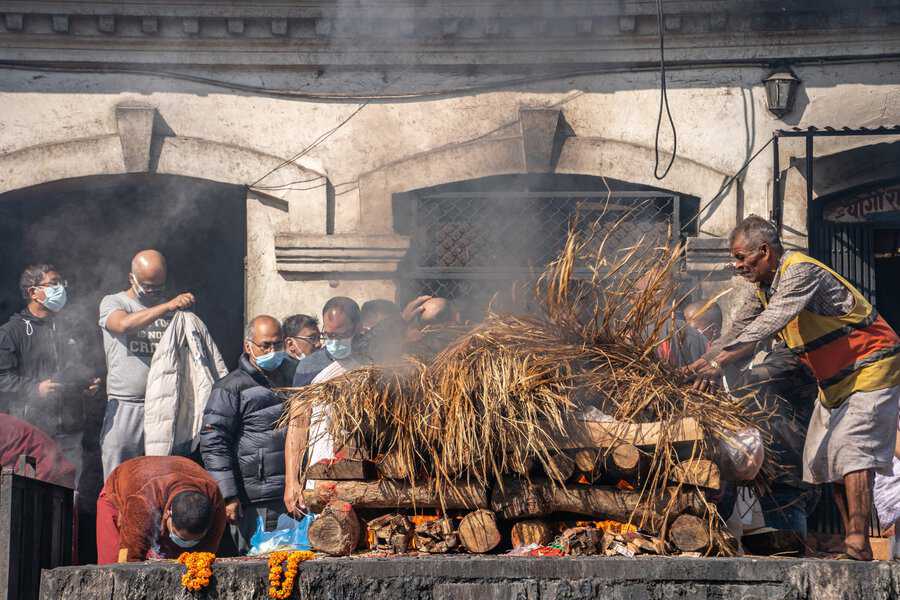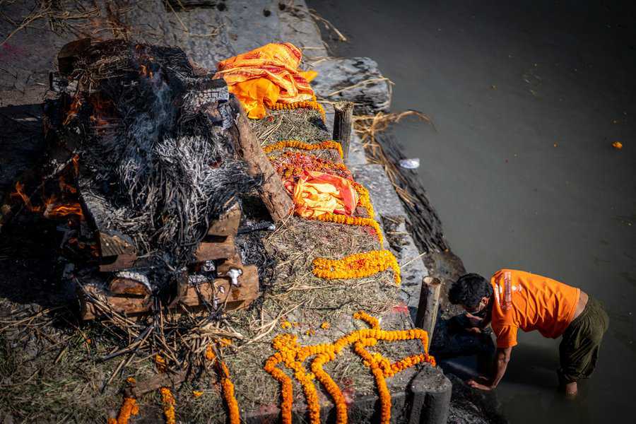 בעוד אנחנו ומרבית מדינות המערב, מבססים את טקסי המוות על יסוד האדמה והנפטר מובא לקבורה בקרקע, בנפאל ובהודו מקדשים את יסודות האש והמים. שני האלמנטים האלו שלובים בטקסי הפרידה מהמת. תחילה יטהרו את הגופה באמצעות טבילה ורחיצה שלה בנהר הקדוש. אח"כ יעטפו אותה בתכריכים לבנים ויניחו אותה לשריפה על גבי המזבח. את העפר ישובו לפזר בנהר, בסיום הטקס. המשפחה תלווה את הטקס הארוך הזה שיכול להימשך שעות ארוכות תחת גשמי מונסונים סיזיפיים או תחת חום כבד.