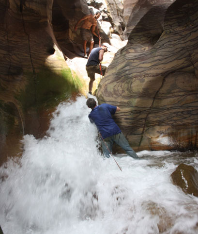 כשגולשים במפלים שופעי מים, תיק אטום למים הוא בגדר ציוד חובה לאחרונה אני מפנה את נסיעותיי בעיקר להיכרות עם הקניונים של האזור שבין פטרה לדרום ים המלח. באזור זה יש מגוון אדיר של ערוצי נחלים, הכוללים גם את הקניונים הטכניים ביותר והקשים ביותר למעבר בירדן כולה. כך לדוגמה נכנסנו לפני כשנה וחצי, חבורת מטיילים, אל קניון קצר, שלתומנו חשבנו שהטיול בו יסתיים בתוך שעות אחדות. בסופו של דבר מצאנו את עצמנו בחוויה מפוקפקת של גלישת חבלים ביותר מ-40 מפלים, שבניהם הנחל מוצף בשרשראות של בריכות מים קרים. 15 שעות של התקדמות בקור האדיר של המים והרוח הקלילה הנושבת בקניון. לאחר התאוששות מהטיול והתבוננות מחודשת במפות, סימנתי מספר קניונים נוספים שנראה כי אופיים דומה לזה שבו עברנו – נחלים צרים, מרובי מפלים ובריכות מים.
