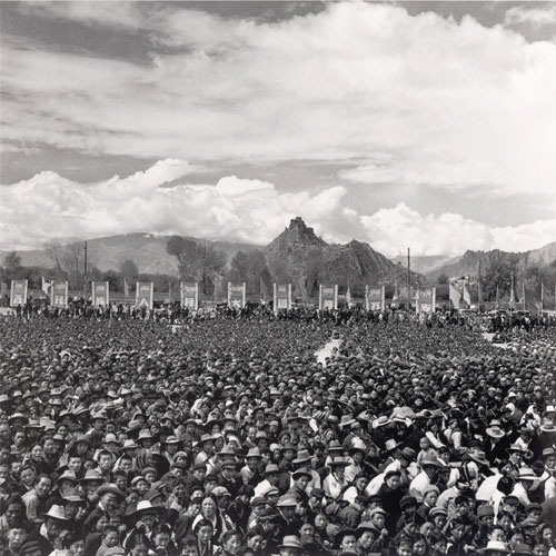 "זו היתה תקופה נפלאה" ב־1 באוקטובר 1949 הכריז מאו דזה־דונג על הקמתה של הרפובליקה העממית של סין, וכשחזרה אווה לסין, היא מצאה מדינה שיכורה מאושר. "זו היתה תקופה נפלאה", היא נזכרת בגעגועים. "האנשים שוחררו, היתה תקווה גדולה באוויר. רכבתי על האופניים שלי עם המצלמה, והייתי מאוד נרגשת. תיעדתי את חיי היומיום בסין כפי שחוויתי אותם בעיר ובכפר: אנשים פשוטים, בתי ספר, בתי חולים, גנים ציבוריים. לא חשבתי הרבה על פוליטיקה. חשבתי רק שהארץ צועדת קדימה ושהאנשים שמחים. מאו באמת שחרר את הסינים. רבים מהם חיו עד אז ממש כמו עבדים. אחרי המהפכה היתה עבודה, נתנו להם משרות שקודם לא היה להם סיכוי לקבל, והם היו גאים מאוד בסוציאליזם. דרך הצילום, התאהבתי בסין ובסינים". ואכן, בשנים הראשונות של ביסוס הרפובליקה נחל המשטר החדש הצלחות כבירות וחולל שינויים עמוקים בחברה הסינית: נערכה רפורמה אגררית רחבת היקף, הכלכלה ההרוסה שוקמה, האינפלציה נבלמה והונהג שוויון זכויות לנשים. אמי סיאו תוגמל יפה על השנים הקשות שעשה כפעיל המפלגה הקומוניסטית בימי המדינה שבדרך. הוא מונה כמזכיר הסיני של "ועד השלום העולמי", שמושבו היה בפראג. כך הגיעה לפראג באפריל 1951 משפחת סיאו, שכללה אז כבר שלושה בנים, והתערתה בחוג בינלאומי של סופרים ואמנים, בהם המשורר פבלו נרודה, הסופר המזרח־גרמני סטפן היים ורבים אחרים. בקיץ 1953, השנה שבה הונהגה בסין תוכנית החומש הראשונה לפי המודל  | למרגלות ארמון פוטלה, משכנו של הדלאי לאמה בטיבט, מתוך הסדרה "מסע לטיבט". לדברי אווה סיאו, הדלאי לאמה "הכריז על נאמנותו בלב ובנפש למולדתו בסוציאליסטית" |