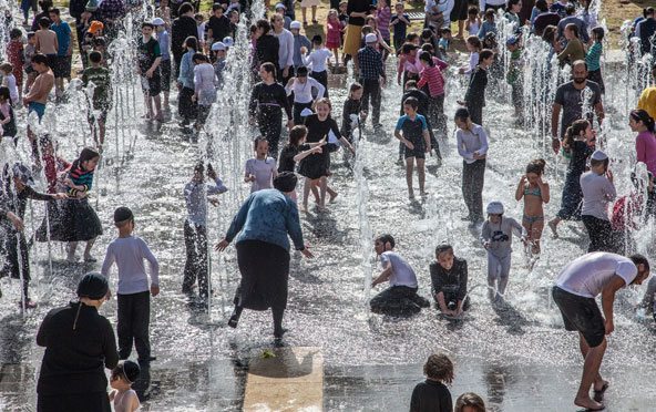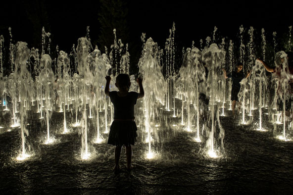 בניגוד ליפו, ירושלים, עירי הנוכחית, נטולת מקורות מים גדולים. אבל כל שצריך זה מזרקה אחת כדי לקבל צילומים מעניינים, וכך מצאתי את עצמי לרגלי שער יפו, בפארק טדי. בליווי מוסיקלי מתאים, משפחות רבות מגיעות לכאן, על טפן ובקוד לבוש שונה. הילדים והאמהות משכשכים בשמחה גדולה במים הצוננים ביום חם. המתנה ללילה מאפשרת תמונות באווירה רגועה. אני ממליץ להעלות את ה-ISO ולהתמקד על צללית או שתיים.