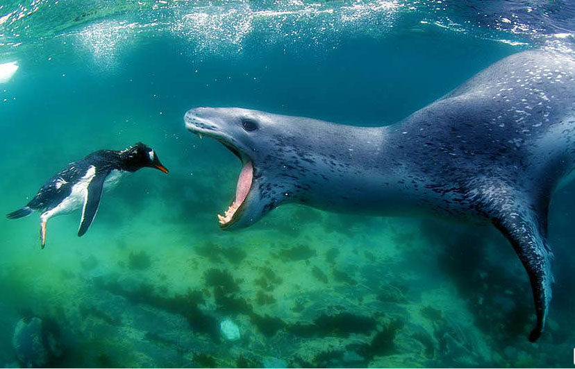 קשה להוריד את העיניים מהצילום למעלה (לחצו על התמונה להגדלה): כלב ים פוער פה מול פינגווין קטן, שעומד להפוך לטרף בתוך שניות ספורות. הצילום העוצמתי הזה, שצולם באנטארקטיקה, זיכה את עמוס נחום, צלם ישראלי החי בארצות הברית, במקום הראשון בתחרות היוקרתיות של ארגון הצלמים האמריקאי APA. הצילום של נחום, שהגיע למקום הראשון מתוך 28 אלף צילומים שהתמודדו בתחרות, משקף את עיסוקו העיקרי: צילום של בעלי חיים גדולים, בעיקר בים, אבל לא רק. כדי לתפוס את הרגע המדויק ואת הזווית המעניינת, נחום שוחה וצולל ברחבי העולם בחברתם של ענקי האוקיינוס. הוא צבר שעות צלילה רבות בחברתם של כמה מהטורפים הימים המבהילים ביותר – כרישים, לוויתנים קטלנים (ראו כתבה למטה) ואחרים. בנוסף לצילום, נחום מוביל בשנים האחרונות טיולים המתמקדים בשחייה וצלילה עם חיות ימיות מסביב לעולם. עוד תמונות מרהיבות של עמוס נחום ומידע על הפעילות שלו אפשר למצוא באתר Big Animals. על מפגשים קרובים במיוחד עם קטלנים בנורווגיה בכתבה הבאה:
