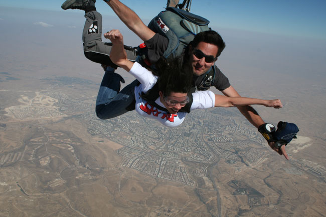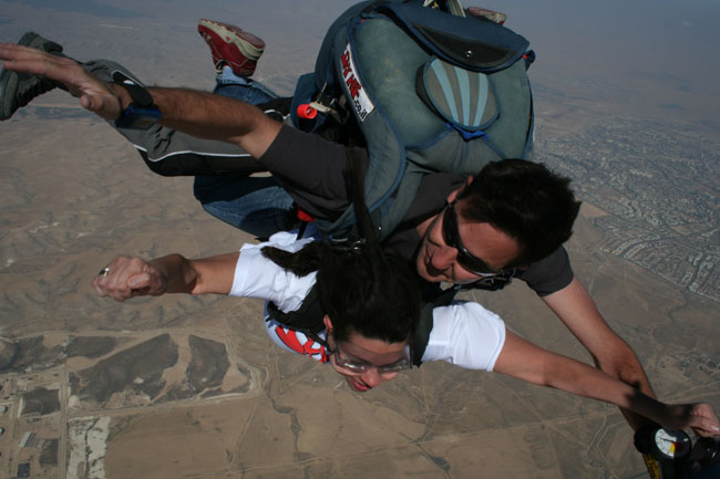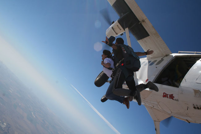 כולכם מוזמנים לברך במזל טוב את יניב ששון, שחגג לאחרונה את יום הולדתו ה-27. למעשה, מזל כבר יש לו לא מעט. חברתו חופית לקחה אותו לסוף שבוע בצימר בדרום הארץ. היא גם אירגנה את התוכניות וחלקה רק את חלקן עם יניב. לכן, שכשהגיעו השניים לשדה התעופה הקטן "שדה תימן", הסמוך לבאר שבע, הרים הבחור גבה. "מה זה הפרופלורים האלה פה?" שאל. "מאמי, אני כל כך אוהבת אותך", הצהירה חופית, "שאני הולכת לזרוק אותך ממטוס". לא זו בלבד שמזלו הטוב של יניב זימן לו אהובה שתעניק לו מתנה מקורית ולא זולה, הוא גם דאג שחוויית הצניחה החופשית תבוא לו כהפתעה, בלי שייאלץ לפתח סביבה חרדות. הרכב הוחנה, המסמכים הוחתמו, רתמות המצנח חוזקו, המטוס המריא ובתוך כעשרים דקות היה האיש שוב על הקרקע, נטול מלים מרוב אושר. לי, לעומת זאת, היו כמה ימים טובים לחשוב על העובדה שמישהו עומד לדחוף אותי מתוך מטוס תקין, כך שאפול במהירות של יותר מ-200 קמ"ש במשך כארבעים שניות, לפני שייפתח (או שלא ייפתח) המצנח. אמנם אני פריק של השחקים – מת על תחושת הטיסה, על מראה העולם ממעל ועל ההתרגשות  | | לומדים "לעשות בננה" | צילום: צפריר אביוב |