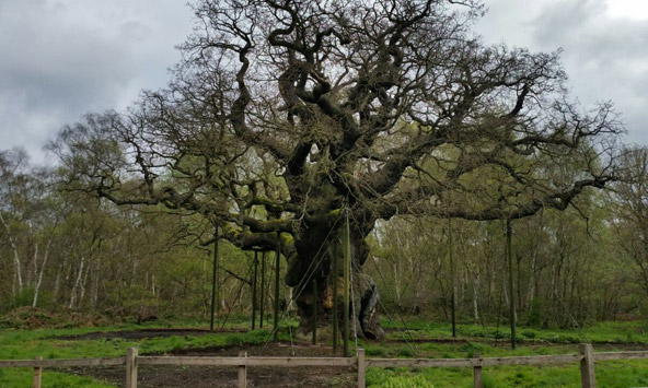 "האלון הגדול", עץ בן 800 שנה ביער שרווד, נתמך כדי להישאר זקוף | צילום: אבירם פלדמן