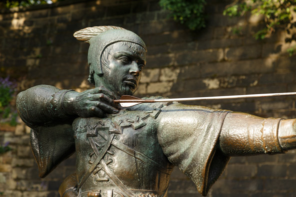 בתמונה הפותחת: פסל של רובין הוד יורה חץ מקשת, טירת נוטינגהאם