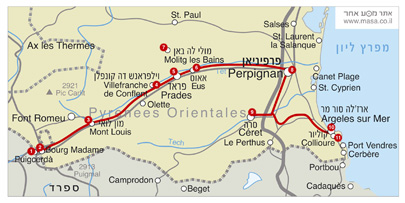 ההרים הם החלום. משם עפים. אחד הנופים המרגשים שראיתי מימי התגלה במעלה כביש צר ומפותל שהוביל אל הר בפירנאים. פיתוי מקרי שהזדמן בדרך ונענינו לו. לאור הדמדומים נמתחו צללים ארוכים ומפתיעים ברכותם על צלע ההר שממול, ובתוך כתמי הצבע הירוקים־צהובים־חומים, אפשר היה בקושי להבחין בעדר כבשים. דִנדוּן בודד של פעמון על צוואר פרה באוויר השקוף הביא את המראה לכדי שלמות. אבל הפירנאים הם לא רק הרים ולא רק חלומות, ויש להם שני צדדים – ספרדי וצרפתי. מלחמות קשות התחוללו עליהם, ומה שנותר מהן עכשיו הוא רומנטיקה: ערי מבצר עתיקות, בתי אבן, חומות, מנזרים. המסע הזה מתחיל על כביש N116, בנקודת הגבול פוִויסרְדַה (Puigcerda) הצמודה לעיירה הצרפתית בורג מדאם (Bourg Madame), לעבר פרפיניאן (Perpignan), בירת הפירנאים המזרחיים שבצד הצרפתי. קצת נמוך יותר, בהמשך הדרך, יושבת וילפראנש דה קונפלן (Villefranche de Conflent), גם היא מוקפת חומה, ואת סיפורי מלחמותיה המרתקים אפשר וכדאי לשמוע ממדריך מקומי. קונפלן הוא שם האזור, וילפראנש פירושו עיר פטורה ממסים. במאה ה־11, כשנבנתה במקום האסטרטגי, בתוך ערוץ הנחל, היה זה יישוב ספר שהוכרז בו על פטור ממסים כדי למשוך בעלי מקצוע שנדרשו לבנייתו. האבן המקומית ששימשה לבנייה היא ורודה – זאת רואים מיד בגשר שבכניסה, שמתחתיו שוצף הנחל. כל העיירה היא שני רחובות מקבילים, כנסייה מעניינת וכיכר השוק שלפניה. אם יש כוח ואמביציה, אפשר לטפס במאות המדרגות אל המצודה הנוספת שמעל וילפראנש, או לצאת לטיול ברכבת הצהובה, המיוחדת למקום, שמגיעה עד לגובה של 1,500 מטר דרך נקיקים ומדרונות שקשה מאוד להגיע אליהם ברגל. עוד עיירה ימי ביניימית בהמשך הכביש היא פראד (Prades), שבכיכר המרכזית שלה מתמקם בכל יום רביעי שוק הפשפשים האזורי הנייד. שוק פשפשים אחר, גדול יותר, נפתח בכל שבת בשמונה בבוקר בשדרה המרכזית של פרפיניאן, מתחת לעצי הדולב, ומתקפל בצהריים.