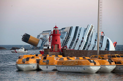 צריך לראות את התמונות כדי להאמין: אוניית הקרוז קוסטה קונקורדיה שוכבת על צדה במרחק נגיעה מחופי טוסקנה. בעלי הספינה אומרים שרב החובל לא פעל לפי ההוראות פורסם 16.1.12 |