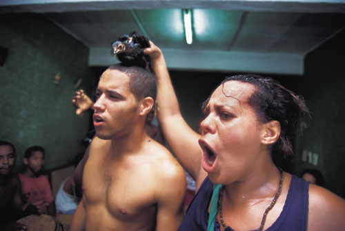 האשה משמאל אינה כוהנת סנטרייה, אבל במהלך הטקס היא נכנסה פתאום למרכז המעגל, טיהרה אותי ואת המצלמה שלי מרוחות באמצעות אגד של ענפים, ואז התנפלה בריקוד סוער על האישה שמימין, כדי לרפא אותה. הטקס נמשך יותר משעתיים, בחדר מסריח ובחום נורא. כדי להתאושש יצאתי למרפסת, שממנה נשקף נוף רוגע של האוקיינוס האטלנטי