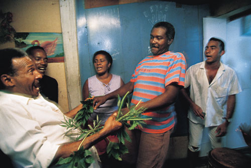 הלקוח הבא סבל מבעיות זִקפה. טוני לגם עוד ועוד כוסיות רום, פצח בקול של זמר נשמה בשיר מזמור לאוֹרישָה, כשהוא מלוּוה בלהקת מתופפים. אחיו הצעיר, שהשתתף בטקס, ליווה אותו בקול שני וקרץ לי תוך כדי שירה כאומר: 'שנינו יודעים שכל זה הוא אולי רק בולשיט, אבל ההצגה חייבת להימשך'. טוני רשם ללקוח מרשם: קוקוס אחד, שני נרות, סיגר, בקבוק רום ושלושה בקבוקי מיץ תפוזים. את כל אלו עליו להביא לו עד למחרת, כדי שיוכל להכין קוקטייל מיוחד נגד אימפוטנציה. אבל אני נזכרתי שעוד קודם הציג בפני טוני את הוויאגרה שהוא מציע ללקוחותיו.