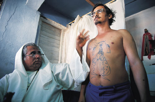 למחרת נסענו בכביש משובש לשכונת סן פדריטו. תינוקות עירומים התגוללו בצידי הדרך ונאלצנו לחצות אגם של ביוב כדי להגיע אל ביתו של הסנטרו לואיס, שסייע פעם למתורגמן שלנו בענייני אהבה. אביו המת של לואיס משמש כפטרונו. "אני הבנאדם היחיד ששומע את הקול שלו", אמר. "אתם לא מאמינים לי, נכון?", שאל כשראה שאנחנו מביטים בו בספקנות.