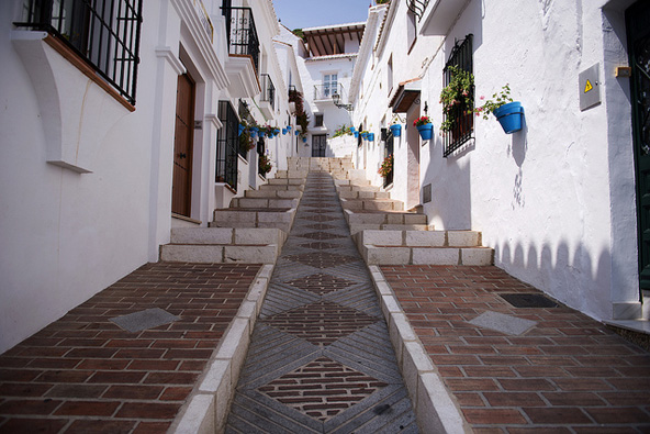 הכפרים הלבנים הכפרים הלבנים (Pueblos Blancos) הוא שם כולל לעשרות כפרים ציוריים הפזורים בנופים ההרריים של חבל אנדלוסיה, שהמשותף לכולם הוא הצבע הלבן הבוהק בו צבועים בתיהם. כמה כפרים נמצאים בקוסטה דל סול או קרוב מאוד וניתן לשלב בקלות את הביקור בהם עם חופשה באזור. הכפר מיחאס (Mijas) הוא כפר לבן טיפוסי, ששייך לקוסטה דל סול, גם אם אינו שוכן ממש על החוף אלא בגובה 428 מטר מעל פני הים. הכפר נחשב לאחת מהפנינים של האזור, ולא במקרה אמנים רבים בחרו להשתקע בו. למרות שהוא חביב מאוד על התיירים, מיחאס הצליח לשמור במידה רבה על הקסם ההיסטורי שלו ועל המסורת האנדלוסית. בלב הכפר נמצאת כיכר Plaza de la Constitucion היפה, שבימי שבת נערכים בה מופעי פלמנקו. יש כאן כמה מוזיאונים קטנים ומיוחדים, כמו המוזיאון ההיסטורי-אתנולוגי שמוקדש לחקלאות ולמלאכות המסורתיות של האזור ומוזיאון המיניאטורות המקסים שמציג עבודות אמנות זעירות. החנויות הרבות לממכר עבודות יד הן מקום מצוין להצטייד במזכרות. מסביב לכפר יש מסלולי הליכה יפים בהרים.  סמטה בכפר מיחאס