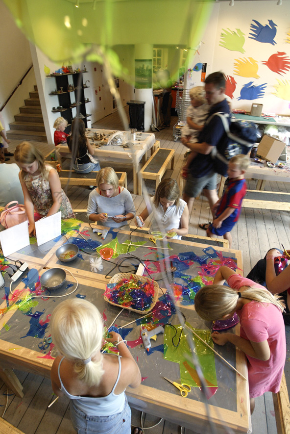 אם הילדים לא מסתפקים בזה, קחו אותם לפארק השעשועים באקן (Bakken), ששוכן מצפן לקופנהגן זהו פארק השעשועים הוותיק ביותר בעולם, והוא נוסד ב-1583. הפארק שוכן בליבו של אזור מיוער והוא מוקף בשמורת צבאים, כך שאפשר לשלב את מתקני השעשועים עם בילוי בחיק הטבע, ולטייל בשמורת הצבאים בעגלה רתומה לסוס. בפארק יש היצע גדול של מתקנים שכולל מתקנים נוסטלגיים לצד מתקנים חדישים. כתובת: Dyrehavevej 62, Klampenborg, אתר אינטרנט  הגלגל הענק בגני טיבולי חוויה מלכותית הארמונות של קופנהגן אמנם לא מרשימים כמו אלה של בריטניה או של צרפת, אבל הם בהחלט ייסעירו את דמיונם של ילדים שעולמם של מלכים, מלכות ואבירים מהלך עליהם קסם. הארמון המלכותי הוא ארמון אמליינבורג (Amalienborg), משכן החורף של מלכת דנמרק, שנבנה במאה ה-18 בסגנון הרוקוקו. בכל יום ב-12 בצהריים ניתן לחזות בטקס חילופי משמר המלכה, וכשהמלכה נוכחת הטקס מלווה במוזיקה. במרכז קופנהגן נמצאת טירת רונזבור (Rosenborg) שנבנתה במאה ה-15 ושימשה כמעון המלכותי עד 1720. היום הטירה משמשת כמוזיאון שמוקדש לחפצים של משפחת המלוכה הדנית, ובין היתר ניתן להתרשם בה מאוצר התכשיטים וכתרי המלוכה של משפחת המלוכה. כתובת: Øster Voldgade 4A. אתר אינטרנט  טירת רוזנבור. כאן אפשר להתרשם מאוצר התכשיטים והכתרים של משפחת המלוכה אמנות לכל המשפחה במוזיאוני האמנות המובילים בקופנהגן ובסביבתה יש אגפים מיוחדים לילדים, שמאפשרים לילדים להשתעשע ולספוג אמנות בהתאם לגילם ולמידת העניין שלהם, בזמן שההורים מתרשמים מן היצירות המוצגות. בגלריה הלאומית של דנמרק (Statens Museum for Kunst) יש מוזיאון מיוחד לילדים בגילאי 12-4 עם תערוכות מיוחדות שמותאמות לילדים. בנוסף, בסופי שבוע, בחגים ובחופשות, מתקיימות במוזיאון סדנאות בהדרכת אמנים, שמאפשרות לילדים להתנסות בטכניקות שונות של אמנות פלסטית, כמו עבודה בחימר, ציור על קנבס, צביעה במברשות צבע ועוד. כתובת: Sølvgade 48-50. אתר אינטרנט  ילדים מתנסים באמנות באגף הילדים של מוזיאון לואיזיאנה