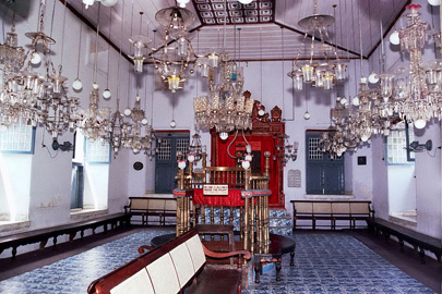 הפעם אני נכנס לבית הכנסת. לאורך החומה הפנימית יש כמה מצבות אבן ישנות עם כיתובים בעברית. בכניסה לבית הכנסת עצמו כולם חולצים נעליים, כנהוג במקדשים ההודים. בפנים, בית כנסת מדהים ביופיו: ארון קודש מכוסה פרוכת, בימה ועזרת נשים חסומה (בעבר ניתן היה לעלות) מוסתרת על ידי מחיצה מגולפת מעץ. מהתקרה השתלשלו נברשות זכוכית צבעוניות, שיובאו מבלגיה, הרצפה מרוצפת באריחים כחולים שיובאו מסין. בפינה אחורית אני מגלה דף ניר גדול ועליו כתוב בכתב יד ילדותי, לוח שנה תוצרת עצמית. שלושה טורים של תאריכים: עברי, לועזי (מערבי) והודי, וליד התאריכים שמות הפרשות של כל שבת וזמני כניסת השבת. ביציאה מבית הכנסת השומר מפנה אותי לחדר צדדי שבו יש תערוכה על ההיסטוריה היהודית בהודו. שם, בין קבוצת תיירים הודים, אני לומד איך היהודים הגיעו לקראלה וקיבלו את חסותו של המהרג'ה ששלט באותה תקופה. לפני שאני יוצא, אני שם לב לשלט על הקיר ובו רשומים שמות בתי כנסת אחרים באזור מדינת קראלה. אני ממהר להעתיק את השמות. מול בית הכנסת, ליד שער גדול המוביל לבית קברות, אני פוגש אדם מבוגר שלראשו כיפה גדולה. הוא מציג את עצמו כמר קוצר ומספר שהוא יליד המקום, שעלה ארצה עם משפחתו לפני שנים רבות. פעם בשנתיים הוא חוזר לקוצ'ין כדי לבקר דוד זקן. אלא, שהדוד נפטר לא מזמן ולדאבונו הוא לא יכול להיכנס לבית הקברות הנעול. אנחנו ממשיכים לשוחח ארוכות על ילדותו, בתי הספר בהם למד והמלאכות בהן עסק עד עלייתו ארצה. יחד אנו עושים את דרכנו לאורך הסמטה, והוא מספר שבחלק זה של הרחוב חיו היהודים יוצאי עיראק בהירי העור, ובחלק המרוחק יותר גרו היהודים יוצאי הודו שחומי העור. כשאנחנו מגיעים לבית דודו, אנחנו נפרדים לשלום, ומבעד לדלת הפתוחה אני מבחין בתמונות משפחתיות ישנות התלויות על הקירות.