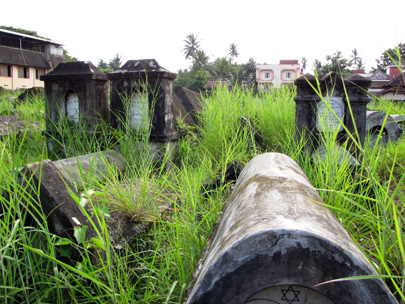 מצבות בסבך הצמחייה חזרנו לאזור המצבות והכפרי המשיך לברא את הצמחים במגל. אט אט מתגלה אבן מצבה עתיקה ועליה כמה מילים, מהן אני מזהה רק את השם כהן, וסמל של מגן דוד. לבי מחסיר פעימה וצמרמורת חולפת בגופי. אני מנסה להתקרב אך איש הכפר מזהיר אותי מנחשי קוברה הנמצאים בסביבה. אלא שהרצון שלי לגלות מה מסתתר מאחורי הצמחייה גובר על הפחד מנחשים ואני ממשיך לפנות צמחייה בניסיון לגלות עוד מצבות. במעלה הגבעה אני מבחין במצבה ענקית, או יותר נכון אחוזת קבר משפחתית. לאחר דקות ארוכות של בירוא הצמחים המטפסים שכיסו הכל, מתגלה הקבר בכל הדרו. עמודים ובאמצעם לוח עם שמות הנפטרים ומועדי פטירתם. הדמעות חונקות את גרוני. גם ראמה, הנהג, לא יכול היה להישאר אדיש, וכך במשך כשעה אנו עולים ויורדים בין הצמחייה והסלעים שעל הגבעה, מחפשים סימני מצבות ומנסים לחשוף אותן. אנחנו מזיזים, מנקים, מגלחים את הצמחייה וחושפים את המצבות. ליד כל מצבה שנחשפה אני עומד וקורא. מי האיש? מתי חי? אני יודע שמזמן לא ביקר כאן יהודי, ושעוד זמן רב יחלוף לפני שיגיע יהודי נוסף, ואני מרגיש שהנני מקיים מצוות כבוד המת. כשהייתי בפולין, במסגרת משלחת צה"ל "עדים במדים", עבדנו על שיפוץ וניקוי בית קברות יהודי, אך אז היינו קבוצה גדולה, מסודרת, עם כל הכלים הדרושים ועם תוכנית עבודה. כאן אני לבד, עם בחור הינדי צעיר ואיש מהכפר, והכלי היחיד שעומד לרשותנו הוא מגל. אך השליחות שחשתי, לא היתה פחותה מהשליחות שהרגשתי בפולין, ואולי אפילו יותר.