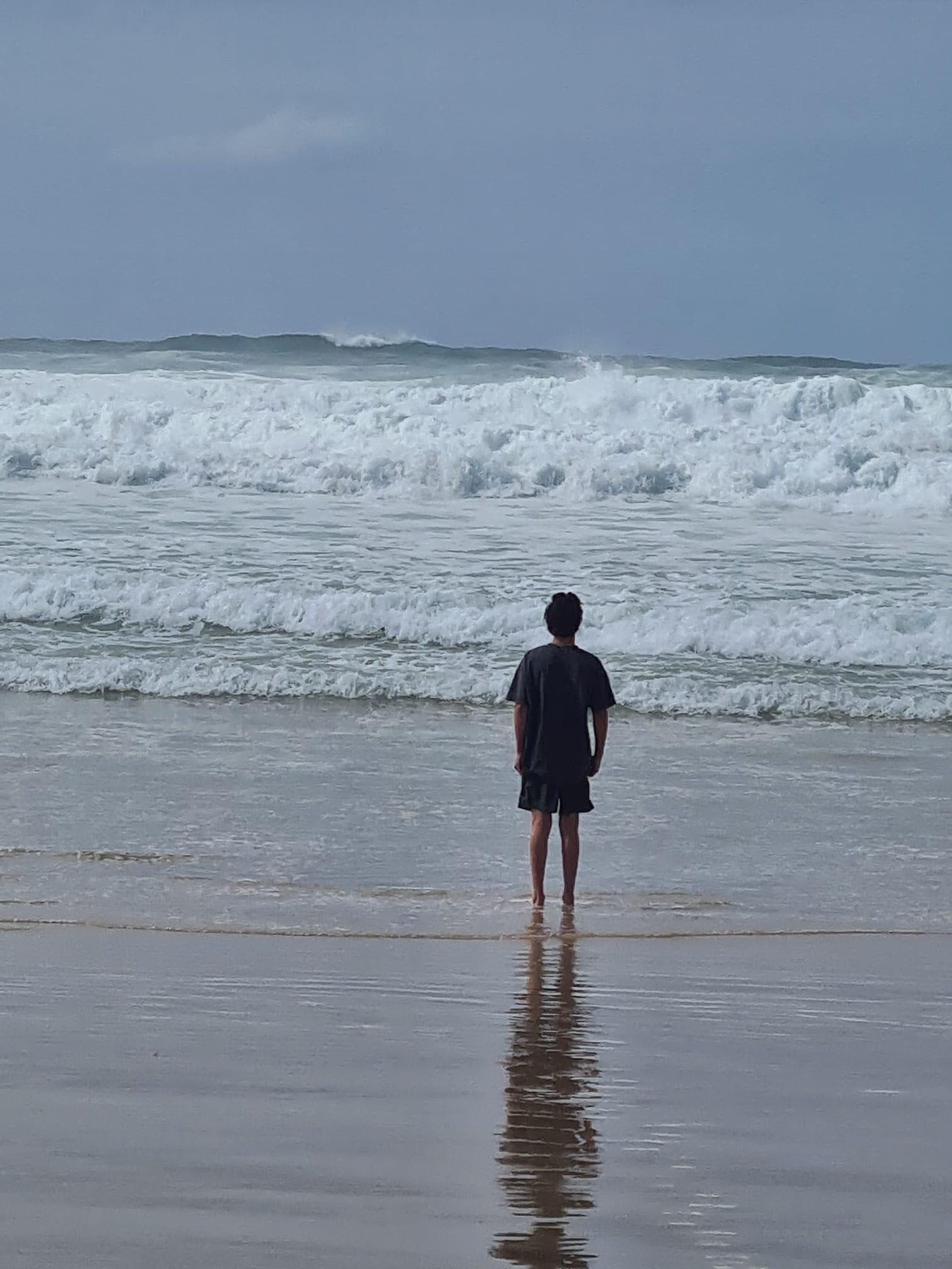 הצילום של ליאורה ברוך מציג סצנה מלנכולית של ילד מול גלי הים. עוצמת הגלים עשויה לבטא סערה פנימית, בעוד ההשתקפות מוסיפה רובד רגשי נוסף ומעמיקה את החוויה.