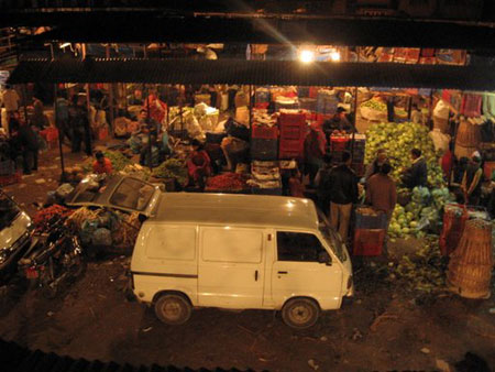 | בזו אחר זו נדלקות נורות החשמל, מאירות את רצפת הבטון שמתמלאת בשקים עמוסי ירקות. קלימטי הוא שוק הירקות הגדול ביותר בנפאל. מדי לילה מגיעות אליו משאיות עמוסות בסחורה המגיעה מהודו ומתחיל יום עבודה ארוך. זה מראה משונה לראות שוק תוסס וחי הפועל לאורן הדלוח של נורות בשעות הקטנות של הלילה. אך לא פחות משונה עבור דרי השוק הקבועים לראות אדם לבן פוסע בחשכת הליל בין הדוכנים. המבטים ננעצים ובכל צעד אפשר להרגיש עוד זוג עיניים מסתובב בפליאה להביט באדם זר. רוב העובדים בשוק ימשיכו לעבוד במשך 14 שעות ובקושי ישימו לב כשהלילה יתחלף ליום וכשהיום ישחיר שוב ללילה. אז רבים שבים לביתם כדי לעבוד במלאכות הבית השונות. קל למצוא את הדרך אל השוק הידוע – כל נהג מונית או הולך רגל מכירים את "קלימטי באזאר". הוא ממוקם דרומית לשכונת תאמל, המרכז התיירותי הפופולרי, השופע בבתי קפה ומסעדות מערביות שמציעות אספרסו משובח, מזון אנין, עיצוב חדשני ושאר הטבות שבינן לבין נפאל אין ולו חצי דבר.
