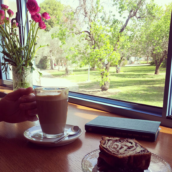 ביקור בקיבוץ מגל שבעמק חפר מגלה פינת חמד עם שלל הפתעות מתוקות ונעימות – בית קפה מקומי עם אופה מוכשרת במיוחד, מרכז מבקרים שבו אפשר לטעום (ולקנות) סוגים שונים של שמן זית איכותי ומי שרוצה להתבשם מפריחות, מוזמן לצאת לטיול במטעי השקד או לרכוב על סוסים לאורך הנחל. העוגות של מור בצל החורשה רחבת הידיים מתרווחים להם, זוגות, חבורות ומשפחות, ולוגמים קפה איכותי מלווה במאפים טעימים שזה עתה נאפו. הריח הטוב הוביל אותנו לחזית בית קפה מעוטר באדניות פורחות, העוטפות שולחנות ברזל בסגנון כפרי. השכם בבוקר הקונדיטורית מור גולדשמידט נמצאת כבר בעיצומה של מלאכת לישת בצק השמרים, שנח כל הלילה במקרר. ניחוחות של מאפים טריים נודדים, מתערבלים באוויר הבוקר ומקדמים את ראשוני הלקוחות שאוספים קפה ומאפה בדרך לעבודה או לחדר הכושר, ואת אלה המשתהים לפגישות עבודה עם טעם של מאפה בפה. בינתיים, נאפות עוד עוגות ונארזות העוגיות.  עוגת שמרים שזה עתה יצאה מהתנור, כוס קפה, ספר ומדשאות פסטורליות – בית הקפה של מור | צילום: רענן כהן