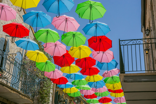 בתמונה הפותחת: מטריות מעופפות בשמי ירושלים, חלק מאירועי פייסטה דה העירה | צילום: נעם פיינר |