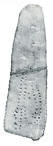 לוח עצם שהתגלה ליד בלנשאר (Blanchard), בדרום־מערב צרפת, הוא הקדום ביותר בין ממצאים אלה. גילו, כגילם של ציורי המערות הראשונים, כשלושים אלף שנה. מבעד לעדשת המיקרוסקופ אפשר לראות כי לחורים הנקובים בלוח יש צורה ירחית מובהקת: חלקם עגולים לגמרי, אחרים דמויי סהרון, והם מעוצבים בתבנית של ספירלה. מרשק טוען כי בעזרת הצורה הזאת שמר השאמאן שצפה בכוכבים על רציפות התיעוד של מולדי הירח, וכי העיקולים נקבעו כך שיתאימו לסימון של תפניות חשובות במולד.