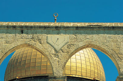 שעון שמש על קשתות הכניסה לבמה המוגבהת של כיפת הסלע | צילום: ברוך גיאן