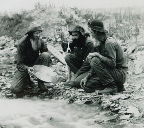עגלת תה מלאה זהב עסקי כריית הזהב התפשטו מקולומה במהירות מסחררת להמשך ערוץ הנחל. שבעה שותפים ממונטריי מצאו בנהר פת'ר (Feather) 273 פאונד (כ־125 קילוגרם) של זהב תוך שבעה שבועות, ומנהר יובה (Yuba) הרוויחו חמישה הרפתקנים 75 אלף דולר בתוך שלושה חודשים בלבד. הכנסתם הממוצעת של כורים אחרים באיזור נעה בין 60 ל־100 דולר ביום. הכרייה ב־1848 התמקדה בחלקים הרדודים של הנחלים. באמצעות כלי מתכת דמוי מחבת וכלי לנענוע, נשטף הבוץ מאדמת הסחף של הנחל. במקומות שבהם כרו  | | הכורים ישנו באוהל מרופט או בצריף רעוע, לבושים בבגדים מלוכלכים, קרועים או בלתי מתאימים לאקלים המקומי | צילום: באדיבות ספריית הקונגרס |