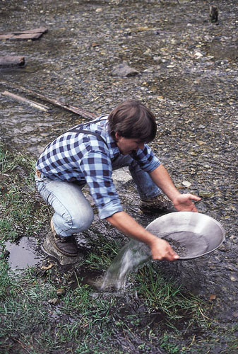 ביבשה, כמו באובורן (Auburn), האנגטאון (Hangtown) וסונורה (Sonora), חרצו את הקרקע בדוקרן, סכין או כפית, ואת הגרגרים שנאספו שטפו במים או ניפו ברשת. ההצף שנוצר בזהב הוריד את מחירו לשפל של שישה־שמונה דולרים לאונקיה, בעוד שמחירי האספקה והמזון עלו מאוד בשל הביקוש הרב: מאות דולרים עבור חבית קמח או גלון וויסקי. במאי 1848 נמנו בכל קליפורניה כמה מאות כורים. עד תום הקיץ טיפס מספרם לעשרת אלפים, רובם המכריע מקליפורניה. לאחר נצחונה של ארצות הברית על מקסיקו ב־1848, חיילים אמריקאים רבים ששבו מהקרבות נותרו ללא עבודה. אליהם הצטרף כל מי שכמה פרוטות היו מצויות בכיסו לעשות את המסע: חוואים, חנוונים, פקידים, רופאים, פוליטיקאים, עורכי דין, סטודנטים ועוד ועוד. השמועות על ההצלחה הכבירה הגיעו כבר לכל רחבי ארצות הברית ואירופה. מכתבים מקליפורניה פורסמו בעיתונות בחוף המזרחי ונתקלו בתחילה בתגובות חשדניות. האישור הרשמי הגיע במשלוח של המושל הצבאי של קליפורניה, ריצ'רד מייסון, שהעביר באמצעות הצי דו"ח לממשל, מצורף לעגלת תה מלאה זהב בשווי 3,000 דולר. ב־5 בדצמבר הודיע הנשיא ג'יימס פולק לקונגרס על גילויי הזהב, ובכך ירה את יריית הפתיחה לגל הגירה שני בעקבות הזהב ב־1849. גל ההגירה השני היה שונה מזה שקדם לו בשנה אחת בלבד. מספר המהגרים היה גדול פי כמה, והרכב האוכלוסיה היה מגוון יותר: בנוסף לחקלאים הגיעו גם עירוניים רבים, ובמקום בודדים שיצאו בצוותים נראו הפעם משפחות שלמות. הסכנות שארבו להולכים בדרכים כבר לא היו האינדיאנים, שכמעט לא פגעו בהם כבעבר, אלא קיצורי הדרך שניסו למצוא. מדרום מערב לסולט לייק סיטי (City Salt Lake) שביוטה, ניסתה שיירה של יותר ממאה  | | גם כיום פועלים בקליפורניה מחפשי זהב, אך הכמויות שנותרו הן זעומות | צילום: הראל סטנטון |