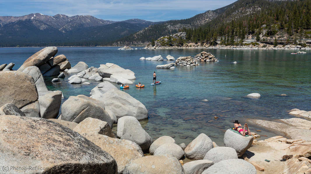 במסגרת הקפת האגם (המלצת זהב שקיבלנו מחבר) גולת הכותרת של היום השני היתה SAND HARBOR, חוף צלול בגווני תכלת-טורקיז, משובץ באבנים גדולות, ביניהן שטים בהרמוניה קיאקים, סאפים וברווזים שלווים. הרשינו לעצמנו להוריד הילוך, לטייל על החוף, והאמיצה שבינינו – אפילו נכנסה למים הקפואים.