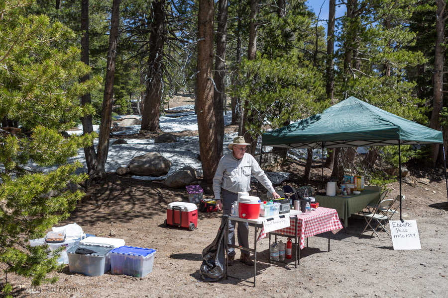 דאגלס, המכונה "צ'יפ-מנק", התעורר ב-03:00 בבוקר בסקרמנטו, והגיע לקראת 06:30 לנקודה הקבועה במפגש הכביש עם השביל. מדי יום, בין סוף מאי לסוף אוגוסט, הוא מקים את תחנת התדלוק המיוחדת שלו, ומחכה למטיילים שעושים את הטרק מדרום לצפון. בתחילת העונה הוא מקווה לפגוש 12 מטיילים ביום, בשיא העונה הוא יפגוש 50. המחנה המרשים, אותו הוא מקים ומפרק בכל יום (!), כולל בין היתר – מזנון עשיר, מבננות וקורנפלקס ועד חביתות וצ'ילי, שתיה חמה וקרה, ערכת עזרה ראשונה מאובזרת בכל מה שמטייל יכול להזדקק לו, מצבר להטענת טלפונים, ואפילו שקיות אשפה באמצעותן יוכלו המטיילים להיפטר ממשקל עודף. לפני שנים הוא פרש לגמלאות מעבודה בבנק בסקרמנטו, וזה מה שהוא עושה עכשיו. בהתנדבות מלאה.