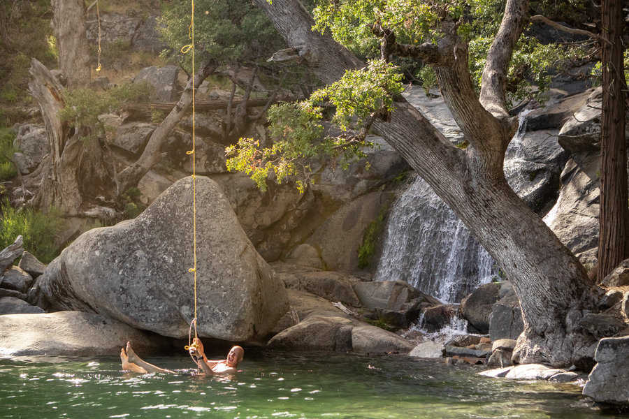 היום הבא חיבר אותנו בין שתיים מגולות הכותרת של הטיול – אגם טאהו ויוסמיטי פארק. הדרך הכלל-לא-מתוכננת בה אפליקציית הניווט לקחה אותנו דרומה, התגלתה כפנינה נדירה ובלתי צפויה. הכביש (בהתחלה מס' 88 ולאחר מכן מס' 4) התפתל ועלה עד לגובה של כ-3,000 מטר מעל פני הים, חוצה יערות סבוכים, אגמים ונקודות חן. לאט לאט התחיל להצטבר שלג בצדדים, ולפתע אחרי אחד הפיתולים נגלה לעינינו אגם מהאגדות בשם KINNEY RESERVOIR. עצרנו לסט צילומים בחשיפות ארוכות והמשכנו בדרכנו. אחרי מאות מטרים, הכביש הצטלב עם אחד ממסלולי ההליכה המפורסמים בעולם, הפסיפיק קרסט טרייל (PCT), שמתחיל במקסיקו ומסתיים בקנדה. שם הכרנו את דאגלס, אחד מ"מלאכי השביל".