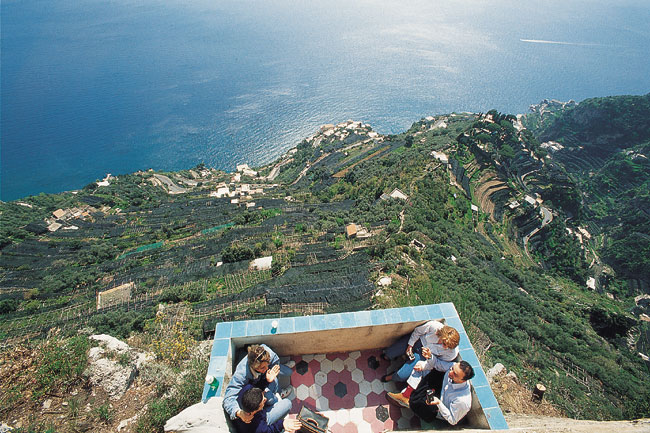 דרך אמלפי: הכביש היפה מכולםלדרך החוף של אמלפי יוצאים בנהיגה מהקצה המערבי של סורנטו, בכביש מספר 145. הכביש הצר, שנחצב כמדרגה במצוקי החוף האנכיים, כבר הוגדר ככביש היפה ביותר באיטליה… באירופה… בעולם… תלוי במגדיר הסובייקטיבי. באופן אובייקטיבי ניתן להסביר כי הארוזיה (תהליך השחיקה של הקרקע) שפעלה על מצוקי הסלע הגירי יצרה קניונים, בתרונות, עמודים זקופים ונטויים, מערות קרסטיות עמוקות ואיי חוף זעירים. הצוקים צונחים לעומק רב, היישר אל מי הים הצלולים להפליא, שצבעם משתנה כל הזמן מכחול לירוק ולטורקיז. הצמחייה נצמדת לצוקים, שבראשם מגדלי תצפית ושמירה עתיקים, בתחתיתם כפרי דייגים קטנטנים, וביניהם משובצות פה ושם עיירות חוף קטנות. יחד עם הטופוגרפיה הפראית, נוצר כאן שילוב מנצח המבטיח חוויה בלתי נשכחת לנוהג בדרך זו. השיפועים התלולים להחריד, הפיתולים המבהילים שאינם נגמרים, המנהרות והגשרים הצרים התלויים מעל לערוצים – כל אלה מחייבים נהיגה זהירה במיוחד. סעו לאט ועצרו הרבה! העצירה הראשונה למבט פנורמי מלא על מפרץ סלרנו תהיה בפסגת המעבר ההררי קולי די סן פייטרו (Colli di San Pietro). מכאן מתחיל מדרון תלול מאוד, שהתצפית הממוקמת היטב לקראת קצהו מאפשרת מבט מגבוה על עיירת הדייגים והקיט הצבעונית פוזיטאנו (Positano). הקטע הפראי המרשים ביותר של הדרך נמצא כשלושים קילומטר אחרי היציאה מסורנטו, ומוביל אל החניה שמעל למערת האזמרגד (Grotta Smeraldo). הגישה למערת נטיפים מופלאה זו היא במעלית היורדת אל החוף, ומשם בסירה הנכנסת אל תוך המערה כשהים רגוע. הצבע הירוק-אזמרגד המדהים של המים הוא תוצאה של שבירת קרני האור במעברן דרך המים שבתוך המערה.