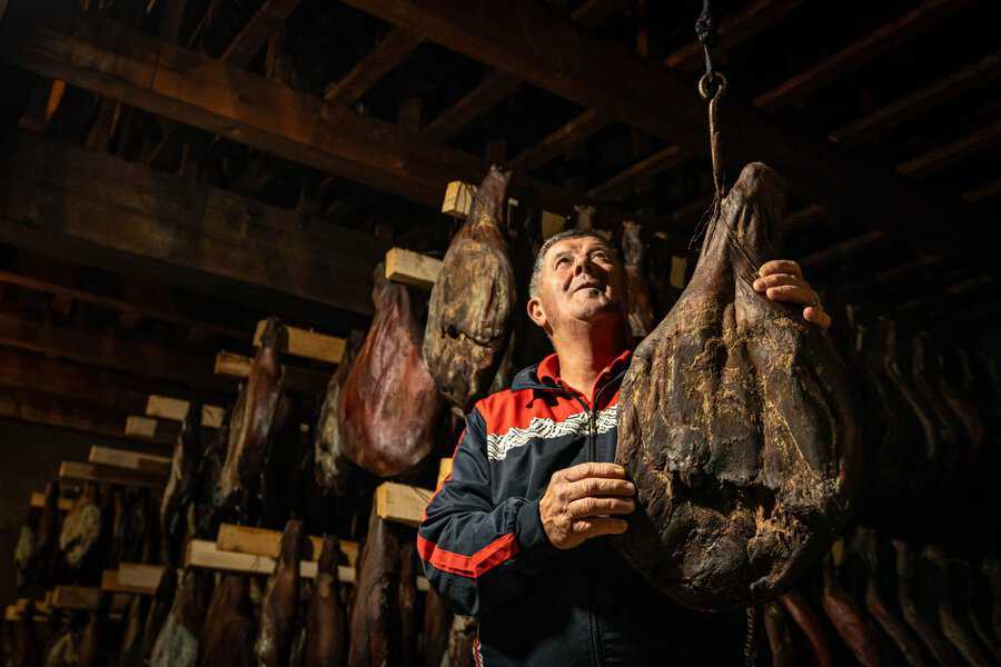 מכאן התחלנו להעפיל אל ההרים בדרך הסרפנטינות המציעה אינספור תצפיות עוצרות נשימה על מפרץ קוטור. זהו אחד המפרצים היפים ביותר באירופה. אוויר ההרים הצלול והפסגות הגבוהות שנעטפו בערפל סגרירי, עשו סוויץ' מיידי של מעבר מישראל הים תיכונית החמה אל פראיות אירופאית צוננת. סיימנו את יומנו בכפר נייגושי, בו מעשנים גבינות ומייצרים את הפרשוטו – בשר מיובש מתובלן של ירך חזיר. בתים שלמים הופכים בכפר למעשנה ולבתי אחסון של תלייה וייבוש של פרשוטו. הכפר נקרא נייגושי על שם המשורר הלאומי של מונטנגרו שהיה ברוך כישרונות ובין היתר היה גם השליט החשוב ביותר שלה באמצע המאה ה 19.