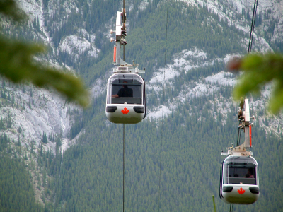 הרי הרוקי האטרקציה העיקרית בהרי הרוקי הקנדיים היא הנופים המרהיבים. ההרים הנישאים, הקרחונים, האגמים, היערות והמפגש עם בעלי החיים בסביבת מחייתם הטבעית מספקים ריגושים ששום אטרקציה מעשה ימי אדם לא תוכל לספק. יחד עם זאת, אפשר ליהנות באזור מאטרקציות שמאפשרות למקסם את ההנאה מהטבע הנפלא שמסביב. מן העיירה באנף, שמהווה בסיס מצוין לטיולים בפארק הלאומי באנף (Banff), יוצא רכבל (Gondola) לפסגת הר הגופרית. הנסיעה נמשכת שמונה דקות ובמהלכה נשקפים נופים מרהיבים. בפסגה יש מסעדה, מרפסת תצפית מרשימה וכמה מסלולי טיול.  | | הרכבל בבאנף. במהלך הנסיעה נשקפים נופים מרהיבים |