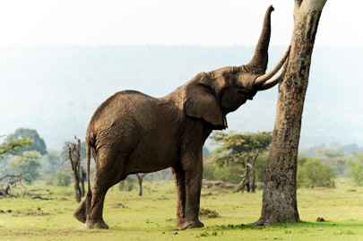 הפילים ועצי הבאובב דרמטיים אפילו יותר הם המעללים שמבצעים הפילים בעצי הבאובב הענקיים. הפילים מקלפים את קליפתם העבה, ולעיתים אף הודפים עצים שלמים לקרקע. ברחבי שמורת טסבו יש רבבות עצי באובב שהפילים כירסמו את קליפתם והם ממשיכים לחיות. כמה פעמים זכיתי לראות פילים בשעה שכיסחו עצי באובב גדולים. פעם בדקנו גדם של עץ כזה, והיה צורך בארבעה אנשים שהושיטו את ידיהם והקיפו את גזעו הגדום, אולם מראה ה"מנסרה" שיצרו הפילים מעץ הבאובב הוכיח עד מה גדול כוחם. חלק מן החוקרים סבורים שהפילים זקוקים למינרלים המצויים בקליפתו העבה של עץ הבאובב. המזון הצמחוני הקשה הורס את שיניו של הפיל, שאינן מזויינות באמאיל עבה וקשה, והן נשחקות בקצב מהיר. במהלך האבולוציה מצאו הפילים פיתרון לבעיית שחיקת השיניים: לפיל יש בפיו רק שש שיניים; שתי החותכות הארוכות שלו הן חטים, המשמשים לחפירה, לקילוף קליפת עץ ולהתגוננות. החטים עשויים דנטין רך ואינם מצופים אמאיל. הנותרות הן ארבע טוחנות, שתיים בכל לסת, והן נשחקות במהירות. הפיתרון של הפיל הוא החלפת שיניים: כל אחת מן הטוחנות מוחלפת במהלך חיי הפיל חמש פעמים. הטוחנות האחרונות צומחות אצל הפיל בגיל 30 שנה לערך, ואורך כל אחת מהן 35-30 סנטימטרים. על פי חישוב זה יש לפיל במהלך חייו הארוכים 24 שיניים טוחנות. שחיקתן של הטוחנות האחרונות מקשה על הפיל ללעוס את מזונו והיא המבשרת את קיצו הקרב.