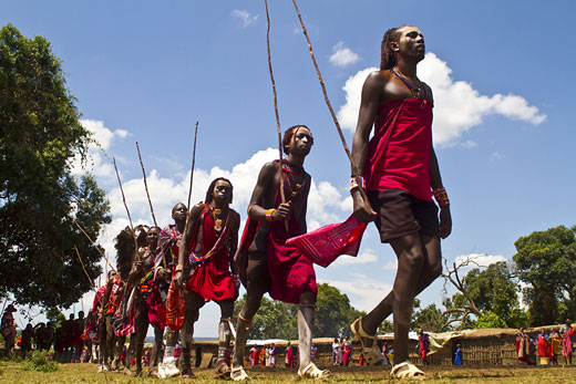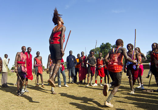 במתחם החלו התגודדויות של קבוצות צעירים ותחרויות של קפיצות שבני המסאים ידועים בהן, כל אחד מנסה לקפוץ גבוה יותר בליווי שירה מונוטונית וקריאות קרב. מדהים לאיזה גבהים הם מגיעים.