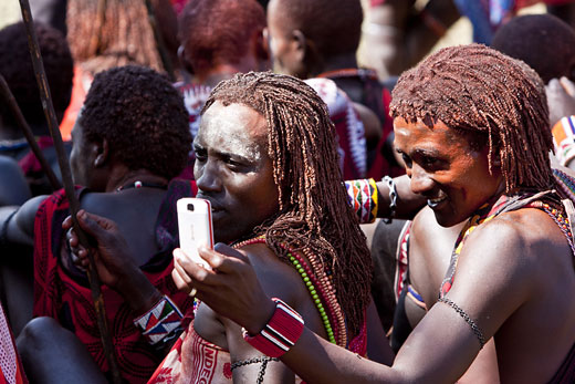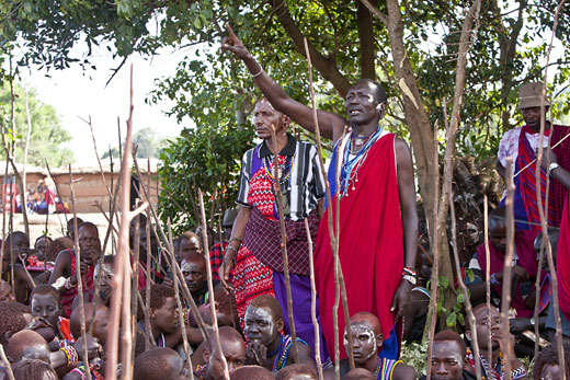 בהמשך, רשות הדיבור ניתנה למבוגר שסיפר להם בשפה המסאית את מעלליו, הרביץ בהם תורה והחל להלהיב את הצעירים, והם בתגובה קמו על רגליהם והחלו לקרוא קריאות קרב. פה ושם נשלפו טלפונים סלולריים מתוך הלבוש המסורתי, והחבר'ה צילמו זה את זה וכמובן שלא פסחו גם עלי. מסביב למתחם המקודש מתגודדות הנשים, להן אסור להיכנס, לבושות בגדי חג צבעוניים ועדויות תכשיטים רבים.