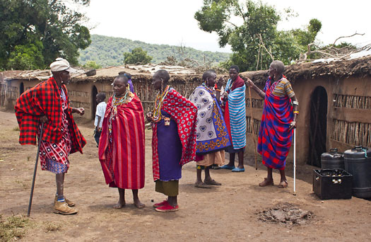 הכרנו בהדרגה את נשות ובני המשפחה הקרובה של המארח, שבא איתנו מהמחנה, ואף הוזמנו לתוך ביתו, מבנה בוץ חשוך ונמוך, מלא עשן, כדי להתכבד בשתיית בקבוק ספרייט. המסאים גבוהים מאוד, ולא ברור לי מדוע הבקתות שנבנו בצורת חצי עיגול כה נמוכות. אחת הנשים הבוגרות שרציתי מאוד לצלם, עצרה אותי לרגע, התכופפה ונכנסה לבית הבוץ, לאחר רגע יצאה עם עגילים ענקיים ומרשימים ששמה על אוזניה. עכשיו אתה יכול לצלם, סימנה לי בחיוך מנצח. כנראה שאישה היא אישה בכל מקום בעולם. נערה יפה, בת עשר בערך, החלה ללכת אחרי ולבקש שאצלם אותה, כשנעניתי היא עשתה פוזות של דוגמנית למצלמה, ניכר שהיא אוהבת את המצלמה והמצלמה אוהבת אותה. בינתיים החלה המולה גדולה בתוך קהל הצעירים שהתגודד בחבורות ברחבי השטח. רצתי בחזרה אליהם כדי לראות מה קורה. זקני השבט שוב מלהיבים את הצעירים ואלה עונים בקריאות הקרב, ושוב מתחיל מעין רונדו מסביב, חלק מהצעירים ממש נכנסים לאקסטזה.