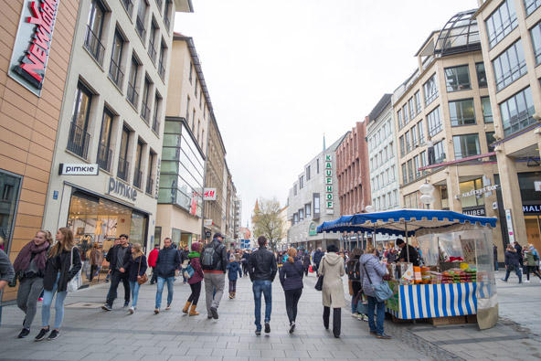 רחוב בדיסלדורף. בכל עיר גדולה בגרמניה תמצאו אזורי קניות יוקרתיים לצד שווקים ואאוטלטים | צילום: Duesseldorf Tourismus