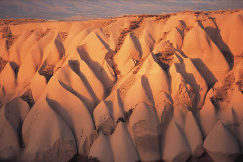 תבנית נופה של קפדוקיה היא תוצאה של תהליכי בליה וסחיפה שחתרו במישור הטוף הלבן הבוהק | צילום: משה שי