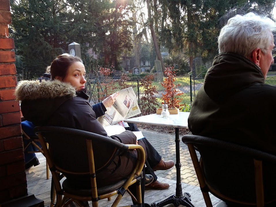 לאחר שיצאנו מבית הקפה שטראוס (Café Strauss) בברגמן שטראסה בברלין, חשבתי לעצמי שתגובות התדהמה והפליאה של גיל ושלי ביחס למקום היו אולי מופרזות מעט, ונבעו, כנראה, מאותה מורשת יהודית הטבועה בנו – דתיים וחילונים כאחד, והנוגעת בקדושת מנהגי המוות והאבלות. יכול להיות. ובכל זאת, סצנה שבה יושבים להם אנשים מבוגרים וצעירים, מעלעלים בשלווה בעיתוני בוקר ולוגמים בנחת קפה אל מול גן מצבות שיש המזדקר מטרים ספורים מהם, נראית סצנה לא שגרתית, ואפילו מוזרה בלשון המעטה. הסיפור הזה מתחיל לילה קודם כאשר קרן, ישראלית וידידה שגרה בשנים האחרונות בברלין, באזור קרויזברג (Kreuzberg), מספרת לנו כי היא מתכוונת לחגוג למחרת את יום אהבה, "וולנטיין דיי", בקפה שטראוס. למה? אני שואל, מה יש בו בקפה הזה? "מקום מגניב", היא אומרת: "נמצא בתוך בית קברות". למחרת אנחנו שם. מסתבר כי בית הקברות Friedrichswerderscher, שהינו פעיל עד היום, נפתח במחצית המאה ה-19 (1844) והקפלה הוקמה במקום כשלושים שנה אחר כך. בית הקברות עצמו מנוהל ישירות על ידי הכנסייה המקומית על פי נהלים וחוקים שנקבעו זה מכבר, ובמבט ראשון, נראה "חי" ועמוס מבקרים. בחוץ קר וקפוא ואנחנו נכנסים אל החדר הגדול, פנימה, כדי להתחמם וגם כדי לטעום את הקפה – המשובח יש לומר. כאן, העלילה המוזרה, שלא לומר הזויה, רק מתחזקת. מסתבר כי בימים ההם כאשר נבנה המקום היו לא פעם מקרים בהם אנשים נקברו בעודם בחיים. לא ממש מפתיע מאחר והרפואה המודרנית במחצית המאה ה-19 הייתה עדיין בחיתוליה. זה היה הרקע לחקיקתו של חוק מיוחד שיצא באותם הימים וקבע כי יש להביא את המתים, או אלה שנחשבו ככאלה, לאולם מיוחד בו הם הונחו במשך שלושה ימים. הם הושכבו באולם ולבהונות רגליהם נקשרו פעמונים קטנים. במידה ו"מישהו" היה זז, השומר ששהה בחדרון סמוך – היום, השירותים של הקפה, היה נזעק כדי לחלצו.