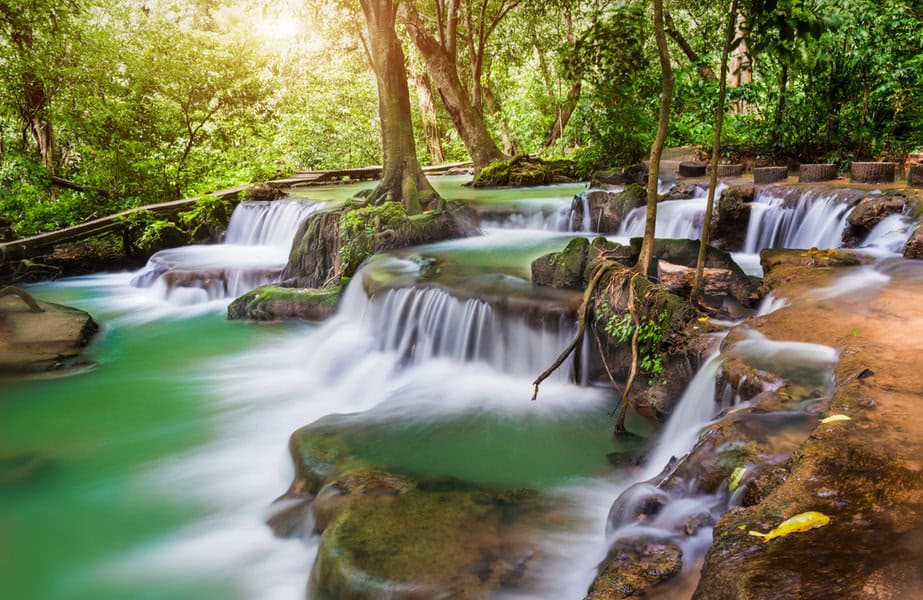 טיול קיאקים: מערות נטיפים וציורים פרה-היסטורייםמחוז קראבי עתיר בשמורות טבע ובאתרי טבע מרהיבים, רבים מהם פחות מוכרים או מתוירים. מומלץ מאוד לשכור את שרותיו של נהג (או רכב לנהיגה עצמאית) וליהנות מיום נפלא וגדוש בחוויות במסלול בו תבחרו. בפארק הלאומי המרהיב Khao Phanom Bencha תוכלו לטייל במסלולים שונים בהרים גבוהים מכוסים בצפיפות ביערות הגשם, אל מערת Tham Khao Phung ומפלי Huay המרשימים. ניתן לעצור לשחייה מרעננת בבריכות הטבעיות הנקוות למרגלות האשדות הזורמים ב-11 שלבים, אולם יש לשים לב שההגעה אליהם כרוכה בטיפוס ממושך למדי בשביל תלול וחלקלק (בתקופות גשומות חשוב במיוחד לוודא את התנאים מראש, לעיתים המקום מוצף לחלוטין ולא ניתן לבצע מסלול זה). חשוב לקחת בחשבון שאמנם מדובר במסלול יפהפה, אולם הוא מצריך מאמץ וכושר גופני טוב (לשם השוואה, מדובר כאן במאמץ משמעותי הרבה יותר מאשר טיפוס כל המדרגות עד לפסגת מקדש מערת הנמר), ויש להצטייד בנעליים מתאימות ובשתייה. הפארק ממוקם לא הרחק ממקדש מערת הנמר ומהעיר קראבי, וניתן לשלב טיול כזה עם ביקור באתרים הסמוכים.