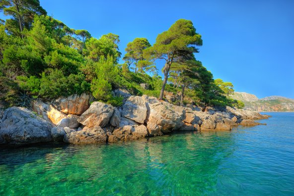 האי לוקרום: יערות ואגם מלח במרחק שייט קצר (כרבע שעה) מדוברובניק נמצא האי היפהפה לוקרום (Lokrum), שאפשר להקדיש לו יום שלם או אפילו לבלות בו את החופשה כולה. באי יש חופים חוליים נהדרים וחלקים נרחבים ממנו מכוסים ביערות של עצי אורן וברוש. באי יש כמה מוקדי עניין, כמו גן בוטני, אבל אחת האטרקציות הבולטות בו היא Mrtvo More, אגם של מים מלוחים, שפירוש שמו הוא "ים המוות" ובדומה לים המלח שלנו גם כאן אפשר לצוף בקלות על המים. בחוף הצמוד לאגם יש מגרש משחקים לילדים.  האי לוקרום. יערות ומים צלולים