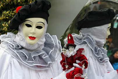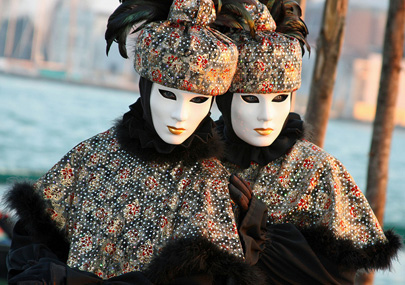 הקרנבל של ונציה שונה מאוד מקרנבלים אחרים באירופה: הוא מתנהל ללא תהלוכות או אירועים מאורגנים. למשך עשרה ימים העיר מתמלאת במופעי רחוב, נשפים, מופעי אש ופנטומימה, ובעיקר – מסכות. הכלל היחידי התופס כאן הוא שאין כללים: איש הישר בעיניו יעשה, והמבקרים מתחרים ביניהם מי הצליח להשיג את המראה הביזארי והמטורף ביותר, מי מתהדר במסכה אוונגארדית יותר. הגעתי לוונציה בבוקר ערפילי, מצויד בידע כללי על הקרנבל, אבל דבר לא הכין אותי למפגש המהמם והמסחרר: עיר שלמה עוטה על עצמה תחפושות מסוגננות. אם בימים רגילים, קיבולת הרחובות בעיר העתיקה של ונציה היא בסביבות 30,000 אנשים, במהלך הקרנבל יש ימים, בעיקר בסוף שבוע ובמזג אוויר יפה, בהם מסתובבים כאן בסביבות 100,000 איש. גלים-גלים של אנשים שוטפים את Lista de Spagna, רחובה הראשי של העיר, בדרכם לפיאצה סן מרקו, הכיכר האלגנטית והמהודרת הנקראת על שמו של מרקו הקדוש. רבים עטופים בגלימות סאטן בוהקות ומסתירים את פניהם במסכות מסתוריות, אחרים מסתפקים בהסתרת העיניים בחצי מסכה.