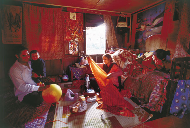 הודים רבים, בעיקר מוסלמים מביהר (Bihar) שבמזרח הודו, נוטשים את אדמותיהם ומהגרים ל"עמק המוסלמים" בקשמיר. מי שציפה לקבלת פנים חמימה התאכזב. הקשמירים מתייחסים לאחיהם המוסלמים בחשדנות ורואים בהם שליחים של הממשל ההודי השנוי במחלוקת. העיתונות המקומית הוסיפה שמן למדורה וכתבה על הסכנה האורבת ל"טוהר הגזע הקשמירי". כבני מיעוטים עניים בהודו וכמהגרים החשודים כמשת"פים בקשמיר, מצטופפים המהגרים בעיקר במחנות אוהלים שהוקמו לאורך הכבישים הראשיים. באחד מהם אני פוגש את נאזיר מוחמד, האורז את חפציו המעטים. בעוד כמה ימים יעבור לג'מו (Jammu) עד לקיץ הבא. הוא לא עובר לבדו. גם הממשל המקומי יעבור מבירת הקיץ סרינגר ההררית לבירת החורף ג'מו שבשפלה החמימה. ריבוי הבירות הוא תופעה ייחודית לקשמיר: מחודשי האביב ועד לסתיו נהנים פקידי הממשל והפוליטיקאים ממזג האוויר הנוח של סרינגר, אך עוד בטרם  | | לא רחוק מסירות המלון המפוארות של התיירים העשירים מצטופפים בסירות רעועות רבבות הודים שמגיעים בחודשי הקיץ לקשמיר בחיפוש אחר פרנסה. בתמונה: משפחה שכזו בסירה ליד גשר אנרה קאדל בעיר העתיקה |